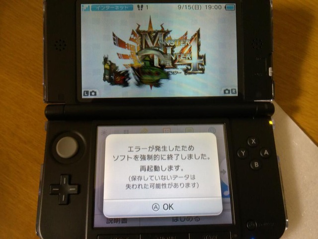 魔物獵人4 3DS日本傳出錯誤後自動重開機災情