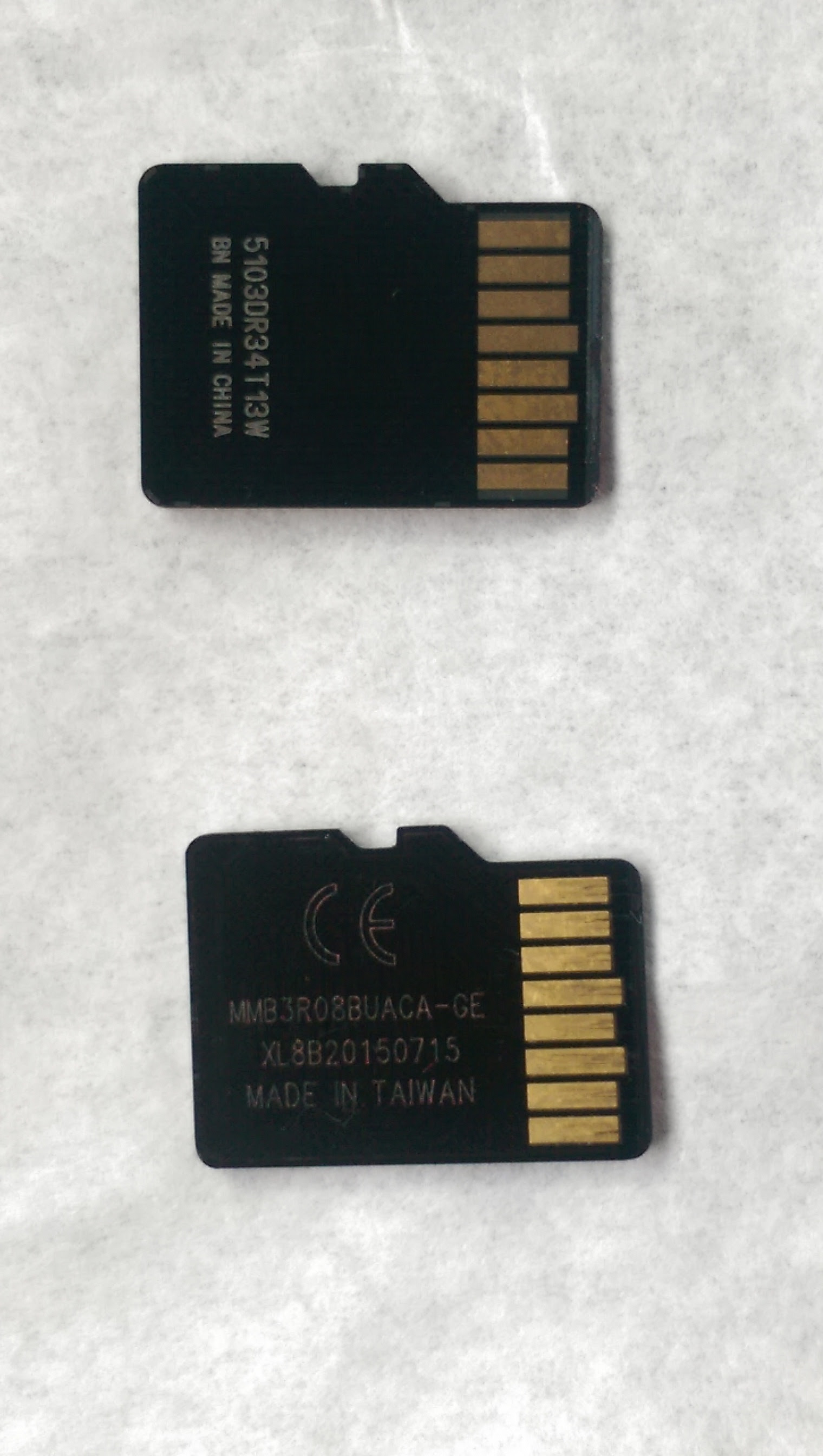 記憶卡本體(上:正品,下:仿冒)