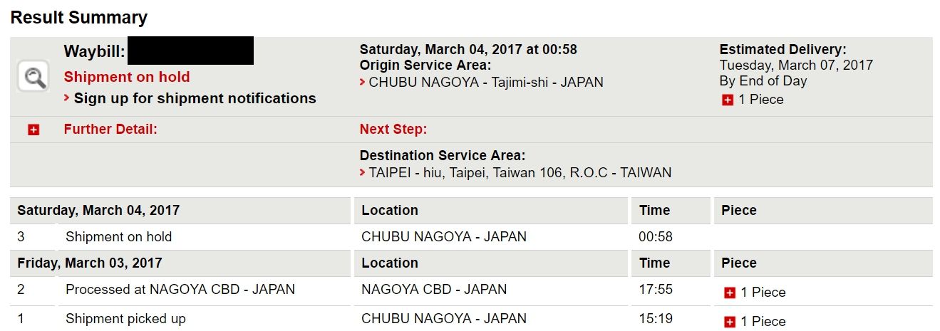 然後DHL放假,所以星期一才會有後續動作